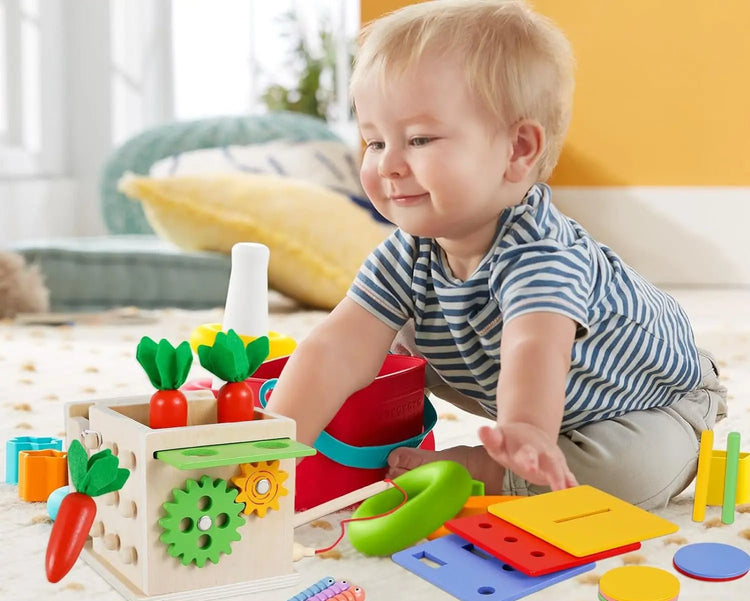 à 1 an, bébé explore son environnement avec curiosité. C'est le moment idéal pour lui proposer des jouets stimulants et variés :